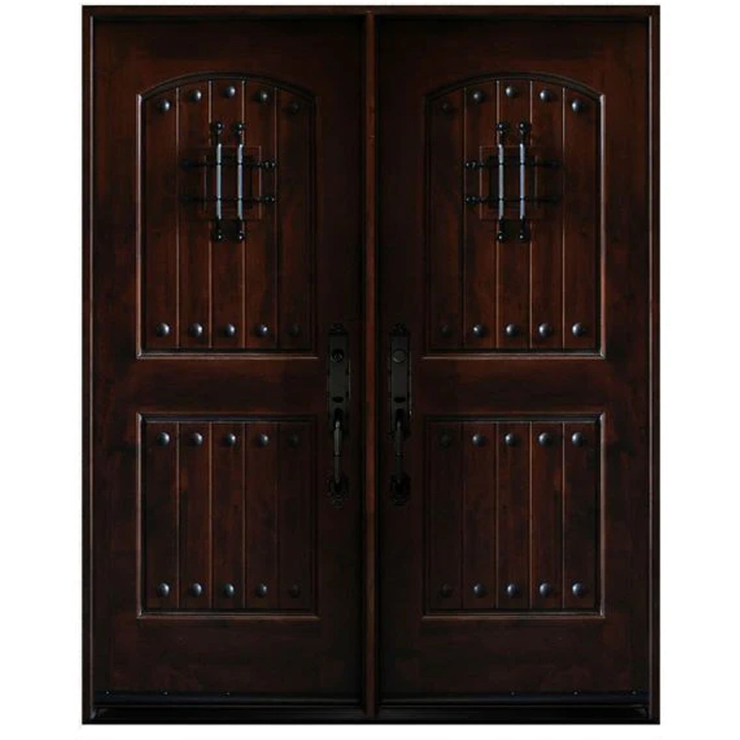 Inspired by the doors of Andalusia, the "Castle" door features fully functional "speakeasys" with metal protection. Crafted out of Knotty Alder it will transform any entryway and evoke the time honored construction of Southern Spain.